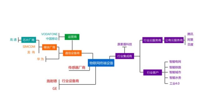 目前,人們習慣將物聯(lián)網(wǎng)分為“感知層”、“網(wǎng)絡(luò)層”、“應(yīng)用層”三個層面。其中感知層包括各類物聯(lián)網(wǎng)終端設(shè)備,如二維碼、RFID、各類傳感器等;網(wǎng)絡(luò)層包括2G、3G、4G以及有線網(wǎng)絡(luò)等;應(yīng)用層包括綠色農(nóng)業(yè)、公共安全、工業(yè)監(jiān)控、智能家庭、智能交通、智慧城市等應(yīng)用領(lǐng)域。但現(xiàn)實中,物聯(lián)網(wǎng)產(chǎn)業(yè)鏈的劃分往往不是那么的清晰,很多企業(yè)橫跨多個領(lǐng)域,彼此互有重合的部分,例如深圳原素盾科技,既是模塊廠商,又是設(shè)備制造商,同時業(yè)務(wù)也涉及到很多行業(yè)的系統(tǒng)集成。在這里,我們僅從感知層面和應(yīng)用層面展開討論。